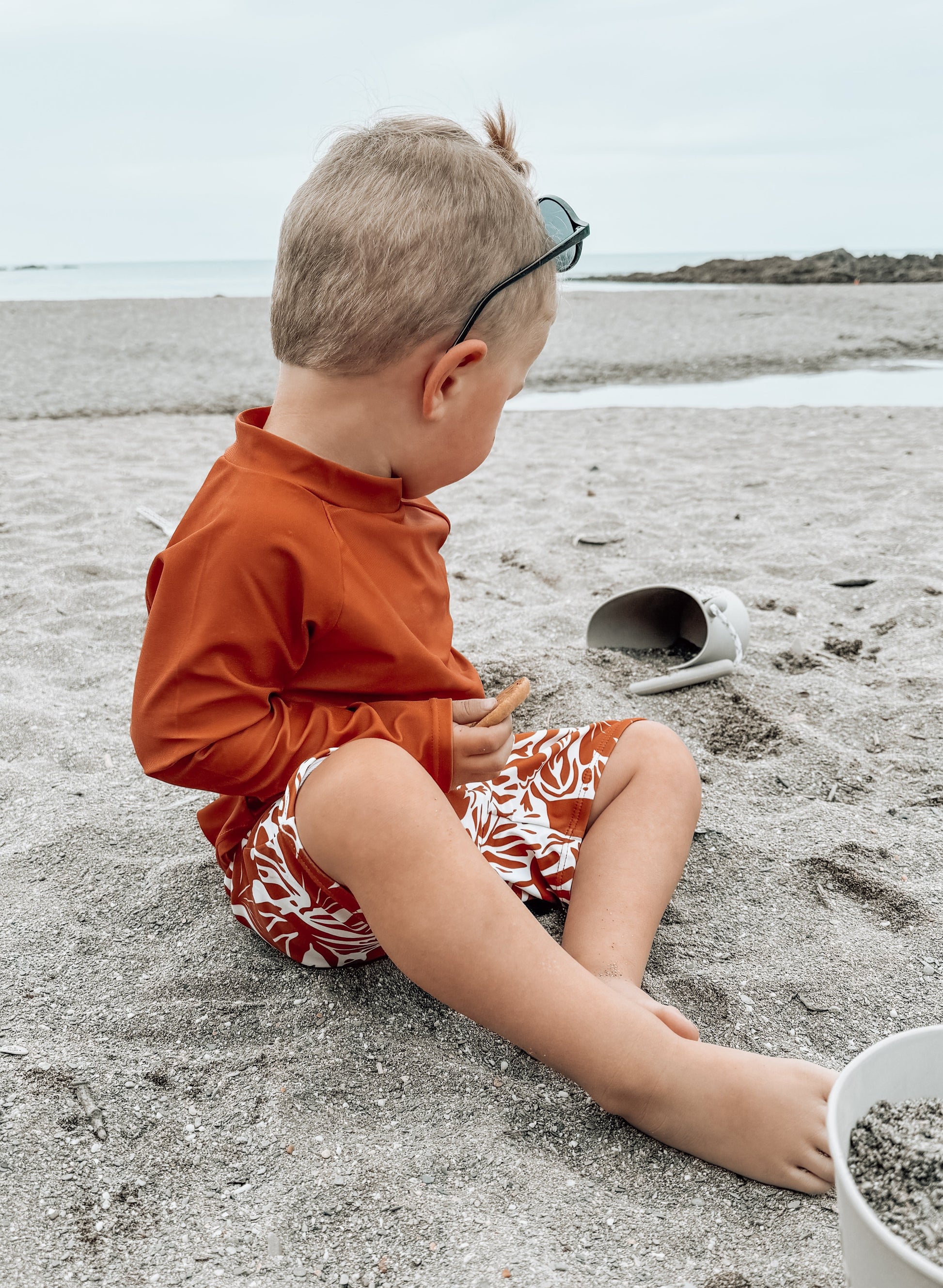 Dress your little ones in style with our Swimwear Sets. Perfect for siblings and friends who love to make a splash together, we have available a unisex long-sleeve swim set and a long-sleeve frill leg swimsuit. Both feature a vibrant rust and cream botanical print, combining comfort, protection, and coordinated charm for beach days and summer adventures.